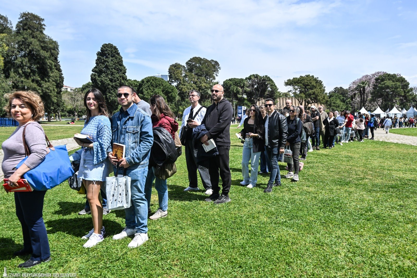 İzmir Büyükşehir Belediyesi'nin ev sahipliğinde, İZFAŞ ve TACT Fuarcılık iş birliğiyle 17-26 Nisan tarihleri arasında Kültürpark’ta düzenlenen İZKİTAP – 7. İzmir Kitap Fuarı, yayınevleri, sahaflar, eğitim ve kültür kurumları ile sivil toplum kuruluşlarını bir araya getirirken; yaklaşık 200 katılımcı ve 400’e yakın yazar, şair, gazeteci ve akademisyeni okurlarla buluşturuyor. Fuar kapsamında söyleşi ve imzalarla birlikte toplamda 500’e yakın etkinlik düzenleniyor. Fuarın ikinci gününde, hafta sonu güzel havayı da fırsat bilen kitapseverler, Kültürpark’ı doldurdu. Öğrenciler, çocuklarıyla birlikte fuara gelen aileler, her yaştan İzmirli, edebiyatla dolu bir gün yaşadı. Özellikle söyleşi alanları ve imza stantlarında kuyruklar oluştu. Okurlar hem sevdikleri yazarlarla bir araya gelme hem de yeni yayımlanan kitapları keşfetme fırsatı buldu.