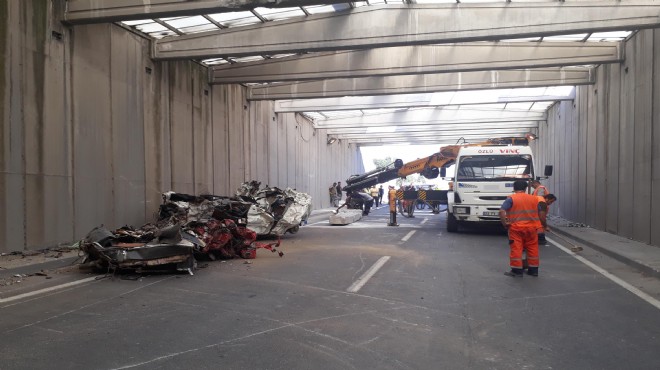 Saat 16.00 sıralarında, Kemalpaşa'dan Konak yönüne giden, A.G. yönetimindeki 45 PA 1745 plakalı kamyonun kasasındaki hurda araçlar, Osman Kibar Alt Geçidi'nin üstündeki beton kirişe çarptı. Çarpmanın etkisiyle kiriş yıkılıp, yere düşerken, kamyondaki 2 hurda otomobil de yola savruldu.