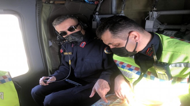 İçişleri Bakanlığı'nca yayımlanan 'yılbaşı tedbirleri' konulu genelge kapsamında, İzmir İl Jandarma Komutanlığı ekipleri, sorumluluk bölgesindeki kara yollarında can ve mal güvenliğini sağlamak, trafik kazalarına bağlı can kayıpları ve yaralanmaları azaltmak amacıyla Aliağa, Foça ve Menemen'de helikopterle havadan trafik denetimi yaptı. Jandarma trafik timlerinin denetimlerinde; sağ şeritte veya bankette uygunsuz durumda araçla bekleyen sürücülere, uygunsuz şerit kullanan ağır taşıt şoförlerine, tehlikeli şerit değiştiren, makas atan, hatalı sollama ve yakın takip yapan sürücülere, kara yolu üzerinde uygunsuz duraklayan ve park eden sürücülere de işlem uygulandı.