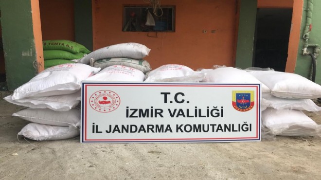 İzmir İl Jandarma Komutanlığı ekipleri, Fatih Mahallesi Bağlar mevkisindeki bir depoda sahte gübre üretimi yapıldığı bilgisi üzerine harekete geçti. Dün saat 18.30 sıralarında belirlenen adrese operasyon düzenleyen ekipler, çeşitli markalara ait sahte bandrollü bin 300 kilo gübre ele geçirdi.