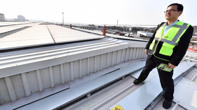 ESHOT Yapı Tesisleri Daire Başkanı Vahyettin Akyol'dan elektrikli otobüsler için enerji üretimi konusunda bilgi alan konuk heyet üyeleri, atölyelerin çatısına kurulan güneş enerji santralini yakından görmek istedi. Bu isteği kırmayan ESHOT yöneticileri, Japon yatırımcıları çatıya çıkardı.