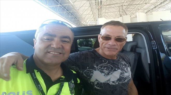Bodrum'daki otelde tatil yapacağı belirtilen Damme, alandaki polis memuruyla fotoğraf çektirdi.