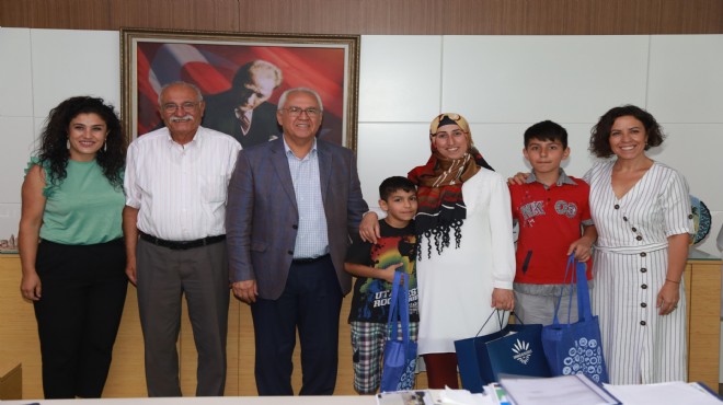 Çocukları Mehmet Said (12) ve Semih Hamza (7) ile birlikte Karabağlar Belediye Başkanı Muhittin Selvitopu’nu makamında ziyaret eden Derya Topraklık, amacının okulunu bir an önce bitirip iş hayatına atılmak olduğunu söyledi.KARBEM’in başarısını duyup kurslara gittiğini belirten Topraklık, kendisine bu imkanı sağlayan önce eşine daha sonra Başkan Selvitopu’na ve eğitmenlerine teşekkür etti.