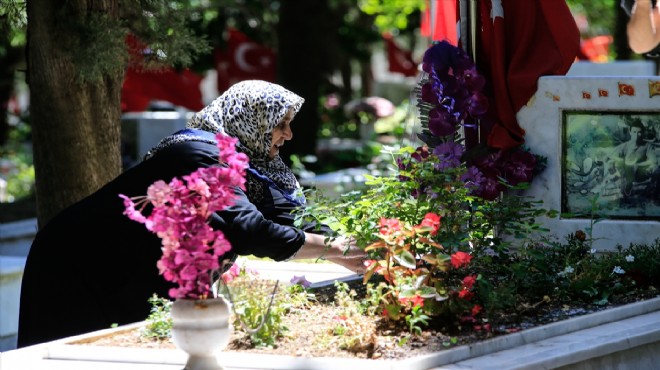 İzmir'deki Kadifekale Hava Şehitliği, Ramazan Bayramı dolayısıyla şehitlerinin kabrini ziyaret eden vatandaşlarla doldu.