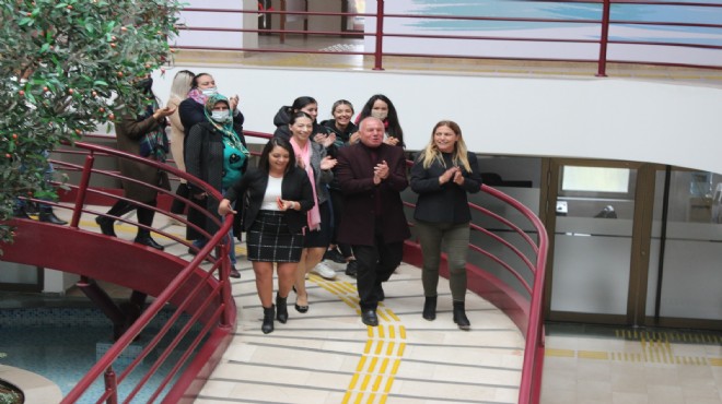 Son olarak, Devrimci İşçi Sendikası Konfederasyonu’na (DİSK) bağlı, Genel İş Sendikası İzmir 7 No’lu Şube Başkanı Özgür Genç ve yönetiminin, belediye meclis salonunda, 25 Kasım Kadına Yönelik Şiddete Karşı Uluslararası Mücadele Günü’nün tarihinin anlatıldığı ve belediyede kadın çalışanların serbest kürsüde kendilerini ifade edebildiği ‘Kadın İşçi Buluşması’ adlı etkinlik gerçekleştirildi. Panelin ardından birimlerde çalışan tüm kadınlar Başkan Karakayalı ile birlikte, meclis salonundan belediye önüne kadar alkışlarla bir yürüyüş gerçekleştirdi. Etkinlik belediye binası önünde sona erdi.