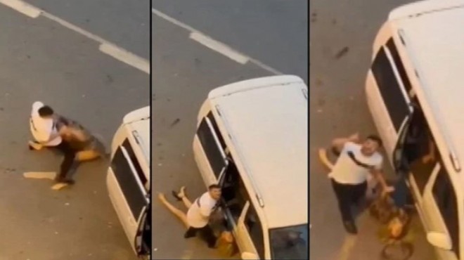 Bayılan kadını park halindeki minibüse bindirmeye çalışan şüpheliyi, çevredeki vatandaşlar cep telefonu kamerasıyla kaydetti.