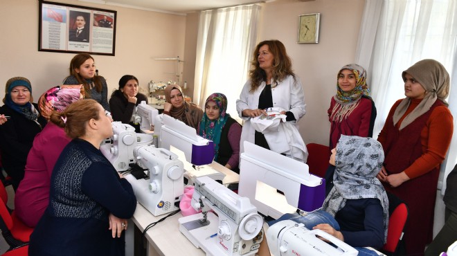 Masal Evi’nde dikiş kursu alan kadınlar ilk siparişlerini aldı. Kadınlar, İzmir Büyükşehir Belediyesi'nin hazırlıklarını sürdürdüğü ve yeni doğum yapan annelere hediye edilecek "İzmir'e Hoş Geldin Bebek" paketi için bebek havlusu yapıyor.