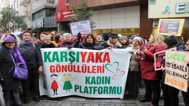 İzmir Kadın Platformu adına basın metnini okuyan Nuray Öztürk, “İktidarın, küçük yaştaki kız çocuklarıyla evlenen erkeklerin istismar suçundan affedilmesine yönelik bir tasarı hazırladığıyla ilgili haberler bir süredir basına yansımakta. Son çıkan haberlere göre AKP tarafından 15 yaş farkının bir kriter olarak benimsenmiş olduğu ve çocuk istismarını meşrulaştıracak bu affın bütçe görüşmeleri tamamlandıktan sonra, Ocak 2020 gibi meclise getirileceği söylenmekte. Şu anda getirilmek istenen af, 15 yaş altı kız çocuklarına karşı işlenen cinsel istismar suçundan hüküm giyen failleri de kapsayacaktır. Yani 12 yaşında bir kız çocuğunun 27 yaşındaki bir erkek ile evlendirilmesi durumunda cezasızlık yoluna gidilmek istenmektedir. Bu cezasızlığın çocuk istismarı suçu faillerine cesaret vereceği ve bu suçu teşvik edeceğini öngörüyoruz. Nitekim, Elbistan Ağır Ceza Mahkemesi kendisinden 9 yaş küçük olan 12 yaşındaki kuzenini evlilik görüntüsü altında istismar eden ve olay gerçekleştiği zamanda ‘kız çocuğunun yaşını bilmediğini’ savunan faili beraat ettirmiş ve Yargıtay da oy çokluğuyla bu kararı onamıştır. ‘Geleneksel değer yargıları, birlikteliklerin sorunsuz devam etmesi, mağdurun şikayetçi olmaması, ceza verilmesi halinde aile yapısının zarar göreceği’ gibi gerekçelerle verilen bu karar, 15 yaş altındaki çocukların cinsel istismarının meşrulaştırılmasının alt yapısının sağlanmaya çalışıldığını göstermektedir. Ayrıca böyle bir af, 2005 yılında kanundan çıkarılan ‘tecavüzcü ile evlilik durumunda cezasızlık sağlayan’ maddenin geri getirilmeye çalışıldığını göstermektedir” dedi.