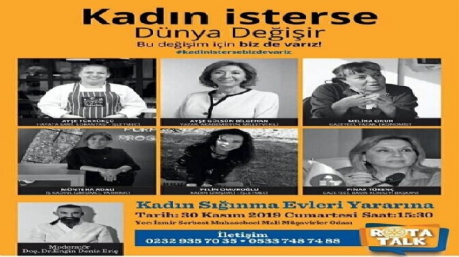 'Kadın İsterse' temasıyla gerçekleştirilecek ROTATALK etkinliği 30 Kasım'da ziyaretçileriyle buluşacak. Etkinliğin geliri kadın sığınma evleri tefrişatı için bağışlanacak. Kadınların hayatlarında farkındalık yaratacak gücün aslında kendilerinde var olduğunu göstermek istediklerini anlatan Karabağlar Çalıkuşu Rotary Derneği Dönem Başkanı Zeynep Aslı Acar, kadınların kendi hayatlarında farklılık yaratırken başka hayatlara da dokunabileceğini söyledi. Acar, "Bu seneki etkinlikte konuk konuşmacılar sahnede 'Kadın isterse' cümlesini tamamlayacak. Çünkü bizler inanıyoruz ki kadın isterse dünya değişir" dedi.