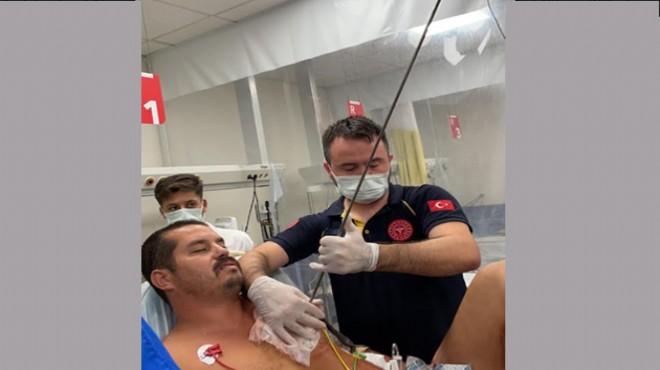 Karaburun’da hobi amaçlı balık avlamaya giden 33 yaşındaki Oğuzhan Sonugür, kazara elindeki zıpkını kalbine sapladı. Bir süre denizde kaldıktan sonra arkadaşlarının yardımıyla kıyıya çıkartılan Sonugür, 112 Acil Servis ekipleri tarafından DEÜ Araştırma Uygulama Hastanesi Acil Servisi’ne kaldırıldı. Sonugür'e ilk müdahaleyi yapan acil servis doktorları, çekilen grafide zıpkının 21 cm içeriye girdiğini saptadı. DEÜ Araştırma Uygulama Hastanesi Acil Servis çalışanları, zamana karşı yarışarak hastayı kısa sürede ameliyat için hazır hale getirdi. Daha sonra DEÜ Tıp Fakültesi Kalp ve Damar Cerrahisi’nde ameliyata edilen hasta, burada yapılan zorlu operasyonun ardından yoğun bakım servisine alındı. Başarılı bir ameliyat geçiren Sonugür’ün tedavisine bir süre daha hastanede devam edileceği öğrenildi.