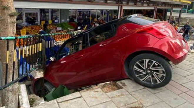 Kaza, bugün saat 14.00 sıralarında, Buca'nın Gazi Osman Paşa Caddesi 27 numara önünde meydana geldi. 35 BIF 343 plakalı otomobilin sürücüsü, direksiyon hakimiyetini kaybetti. Otomobil, kaldırımı aşıp kot altında kalan bir marketin önündeki demir bariyerlere çarptı, kaldırımda asılı kaldı. Kazada ölen ya da yaralanan olmazken, otomobil çekici yardımıyla kaldırıldı.