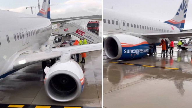 Saat 15.30 sıralarında Sun Express firmasına ait uçağın Antalya-Gaziantep seferini yaparken kalkış sırasında tekerlekleri yerinden çıktı ve uçak motorun üzerine oturdu.