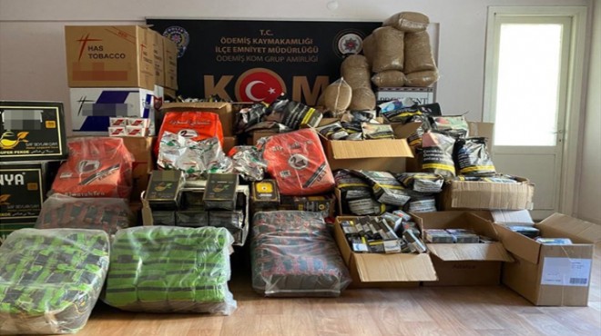 Araçta yapılan aramada 350 bin adet makaron, 245 adet sahte bandrol, 55 kilogram kıyılmış açık tütün, 380 paket kaçak çay, 19 bin kaçak sallama çay, 161 kilogram tütün ve 52 paket nargile tütünü ele geçirildi.