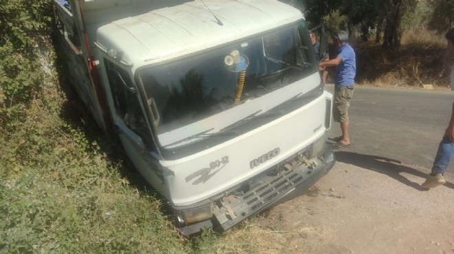 İzmir'in Ödemiş ilçesinde kamyonla çarpışan motosikletin sürücüsü yaralandı.