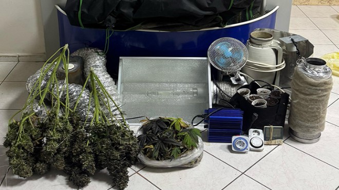 Menderes İlçe Emniyet Müdürlüğü Suç Önleme ve Soruşturma Büro Amirliği, ilçedeki bir apartmanın kapıcı dairesinde uyuşturucu madde yetiştirdiği yönünde bilgi aldı. Bunun üzerine harekete geçen ekipler, kapıcı dairesini imalathaneye dönüştüren H.K. (42) ve S.O.'yu (42) teknik ve fiziki takibe aldı. Yapılan çalışmalar sonucunda şüphelilerin uyuşturucu madde yetiştirdiği tespit edildi. Cumhuriyet savcısının koordinesinde polis ekipleri, H.K. ve S.O.'nun adresine operasyon düzenledi. Adreste yapılan aramada 2 kilo skunk maddesinin yanı sıra uyuşturucu üretimi için vantilatör, 600 wat ışık kaynağı, buhar makinesi, koku filtresi, termometre, nem ölçer, fan motoru, 2 güç kaynağı, 2 zamanlayıcı, çeşitli ebatlarda çok sayıda boru ve madde üretiminde kullanılan bez dolap ele geçirildi. Gözaltına alınan 2 şüpheli, polis ekiplerince emniyete götürüldü. H.K. ve S.O.'nun emniyetteki işlemlerinin ardından adliyeye sevk edileceği öğrenildi. (DHA)