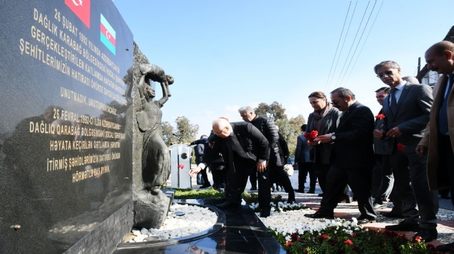 Karabağlar Belediyesi’yle Azerbaycan Türkleri ve Dost Dernekler Federasyonu tarafından Salih Omurtak Mahallesi’ndeki Hocalı Anıtı önünde düzenlenen törene, Karabağlar Belediye Başkanı Muhittin Selvitopu, İzmir Büyükşehir Belediyesi Başkan Vekili ve İzmir Kent Konseyi Başkanı Nilay Kökkılınç, Azerbaycan dernekleri, siyasi parti ve sivil toplum kuruluşlarının yöneticileriyle üyeleri, meclis üyeleri, muhtarlar ve vatandaşlar katıldı.