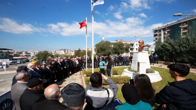 Büyük şairin büstünün de yer aldığı parktaki törene, Karabağlar Belediye Başkanı Muhittin Selvitopu, gazilerimiz, meclis üyeleri, muhtarlar, siyasi parti ve sivil toplum kuruluşlarının temsilcilerinin aralarında olduğu çok sayıda vatandaş katıldı.