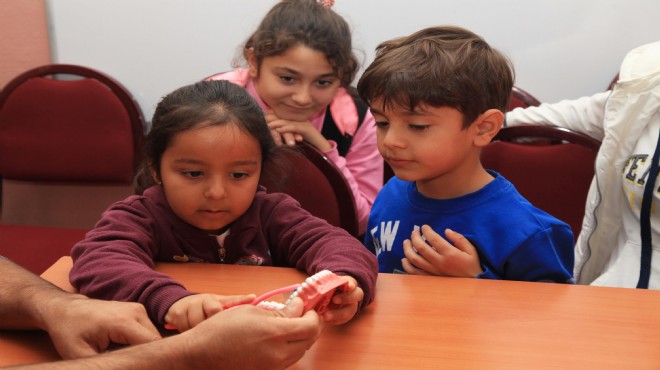 Karabağlar Belediyesi Sağlık İşleri Müdürü Emire Çalışır’ın verdiği diş sağlığı eğitimine minik öğrencilerle birlikte aileleri de katıldı. Diş sağlığının öneminden ve daha sağlıklı dişler için çocukların nelere dikkat etmesi gerektiğinden bahseden Emire Çalışır, “Çocuklarımızın sağlıklı dişlere sahip olmasını istiyorsak, altı ayda bir diş doktoruna giderek diş kontrolünü yaptırmalıyız” diye konuştu.