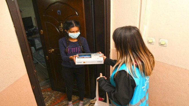 Karabağlar Belediyesi, koronavirüs salgını nedeniyle eğitimlerini evlerden sürdürmek zorunda olan öğrencilere tablet bilgisayar dağıttı. İlçe Milli Eğitim Müdürlüğü’yle yapılan görüşmeler sonucu belirlenen ihtiyaç sahibi öğrencilere verilen tablet bilgisayarlarda, internet paketi de bulunuyor.