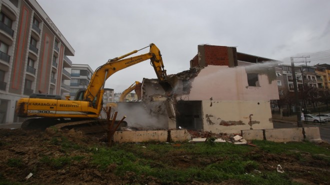 Yıkıma katılan Karabağlar Belediye Başkanı Muhittin Selvitopu da çalışmalar devam ederken incelemelerde bulundu.