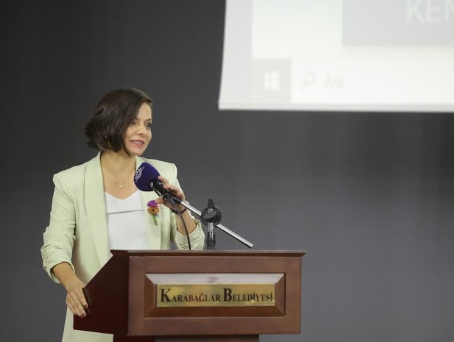 Karabağlar Belediye Başkan Yardımcısı Özlem Şenyol Kocaer ise konuşmasında Osman Aksüner Mahallesi 1. Etap dönüşüm sürecine ilişkin teknik bilgilendirmede bulundu.