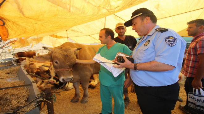 Bu kapsamda kurban satış ve kesim yerlerini denetleyen Karabağlar Belediyesi Zabıta Müdürlüğü ve Veteriner İşleri Müdürlüğü ekipleri Uzundere’de bulunan kurban satış yerinde kontrol yaptı.