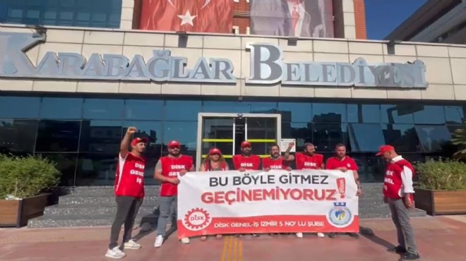 GERÇEKİZMİR - Karabağlar Belediyesi’nde çalışan DİSK Genel İş 5 No’lu Şube’de örgütlü işçiler, belediye hizmet binası önünde düzenli ödenmeyen maaşlar nedeniyle oturma eylemi yaptı.