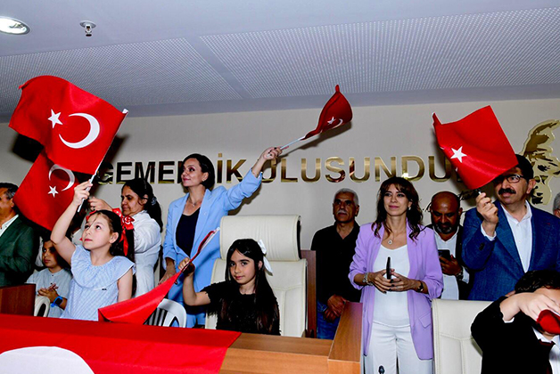 Karabağlar Belediyesi bugün bir ilke imza attı. 23 Nisan Ulusal Egemenlik ve Çocuk Bayramı etkinlikleri çerçevesinde belediye meclisinde, meclis üyelerinin oturduğu koltuklar bugün çocuklara bırakıldı. Uğur Mumcu Parkı’nda çocuklarla beraber Atatürk anıtına çelenk bırakılmasıyla başlayan etkinlikte Başkan Kınay, Karabağların 58 mahallesinden gelen çocuklarla buluşarak onların bayramı kutladı. Başkan Kınay, Gazi Mustafa Kemal Atatürk’ün çocukların geleceği için açtığı aydınlık yolda birlikte olmak istediklerini söyleyerek 58 mahalleden gelen çocuklarla bir arada olmanın mutluluğunu yaşadığını ifade etti. Tüm çocukların hak ettiği aydınlık yarınlar için hep beraber el ele vereceklerinin altını çizerek Atatürk’ün huzurunda Karabağlar’da çocukların mutlu ve huzurlu olduğu ülkenin yarınlarını, beraber yöneteceklerinin sözünü verdi.