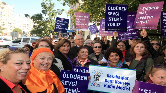 Karabağlar Kent Konseyi Kadın Meclisi, ilçedeki kadın örgütleri ile birlikte kadına şiddete dikkat çekmek amacıyla Üçyol’dan Uğur Mumcu Parkı'na yürüyüş düzenlendi. Ellerinde pankartlar ve sloganlarla yürüyüş gerçekleştiren kadınları Karabağlar Belediye Başkanı Muhittin Selvitopu başta olmak üzere Karabağlar Kent Konseyi Başkanı Seniye Nazik Işık, Kadın Meclisi Başkanı Fahriye Kaşka, sivil toplum kuruluşu temsilcileri, muhtarlar, meclis üyeleri, siyasi parti temsilcileri de yalnız bırakmadı.