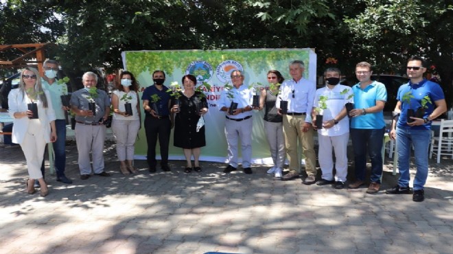 Törende yapılan konuşmaların ardından İzmir Ticaret Borsası yönetimi, Karaburun Belediye Başkanı İlkay Girgin Erdoğan’a sultaniye cinsi tüplü üzüm fidanlarını teslim etti.