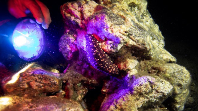 Gece karanlığında derinlere inen dalgıçlar, gündüz çok fazla görünmeyen canlıların yanı sıra yapay ışığa parlak renklerle tepki veren su altı canlılarını izleme imkanı buluyor.