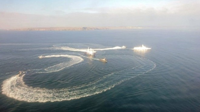 Ukrayna Deniz Kuvvetlerinden yapılan açıklamada, Rusya'nın Ukrayna gemilerine eşlik ettiği ve 6 Ukrayna askerinin olayda yaralandığı aktarıldı.