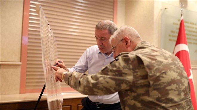 Bölgeden gelen anlık görüntüler üzerinden harekatı anbean takip eden Akar, beraberindeki Genelkurmay Başkanı Orgeneral Yaşar Güler ve Kara Kuvvetleri Komutanı Orgeneral Ümit Dündar ile talimatlar verdi.