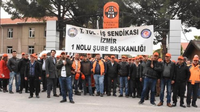 Açıklamaya Türk Yol-İş Sendikası İzmir 1 No'lu Şube Başkanı Coşkun İz ve yaklaşık 100 işçi katıldı. Grup adına basın açıklamasını okuyan Genel Sekreter Sadık Yıs, şunları söyledi: "Karayolları Genel Müdürlüğü'nde asıl işin bir parçası olan yol bakım ve yama hizmetleri karla mücadele hizmetleri gibi süreklilik arz eden işleri, anahtar teslimi olarak üstlenen taşeronların yanında çalışan işçilerin, tünel işletmeciliğinde tünellerin bakım ve hizmetlerini yapan işçiler ile müşavirlik hizmeti altında tünellerdeki HGS dahil her türlü işleri yapan işçilerin, KİT'lerdeki taşeronların yanında çalışan işçilerin, köylere hizmet götürmek için kanunla kurulmuş köylere hizmet götürme birliklerinde çalışan işçilerin kapsam dışı bırakılmaları, özel idarelerde taşeron yanında çalışan işçilerin kadroya alınmamaları, işçi kardeşlerimizi hüsrana uğratmıştır. Taşeron işçilerin kadrolarına geçirildikleri kurumun yaptığı asıl işe göre Sosyal Güvenlik Kurumu'nda tescil edilmiş olan dosyadan kuruma bildirmeleri yerine, kadroya geçecek her bir işçinin yaptığı işin koluna göre ayrı bir bağımsız işyeri tescil edilerek o dosyanın kuruma bildirilmesi endişe vericidir. Adil olmayan bu düzenlemelerin değiştirilerek tüm taşeron işçilerinin başlangıçta hükümetimiz tarafından açıklandığı gibi kapsama alınması, biz işçilerin başta Sayın Cumhurbaşkanı'mızdan ve Sayın Başbakan'ımız ve hükümetimizden beklentilerimizdir. İşçiler arasında ayrım yapılması bizde ve kamuoyunda Cumhurbaşkanı'mızın tam olarak bilgilendirilmediği kanaatini uyandırmıştır. Bizler Karayolları Genel Müdürlüğü’nde muvazaalı, yani kanuna karşı hileli olarak, asıl işin parçası olan anahtar teslimi işlerde taşeron yanında çalışan işçi arkadaşlarımızın kurumlarında kadroya geçirilmesini istiyoruz. Belediyelerde ve İl Özel İdareleri’nde kısmi süreli çalışan işçilerimizin çalışma sürelerinin 4 ay daha uzatılmasını talep ediyoruz" dedi.