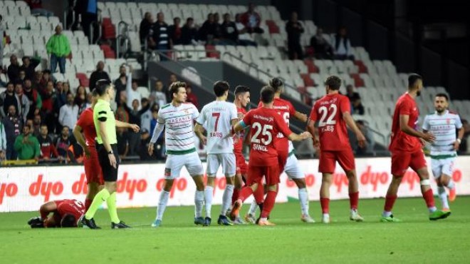 86'ncı dakikada Karşıyaka'da İhsan Furkan, geri pasta kaleci Ogün Samet'in elinden kaçırdığı topu boş kale yerine üstten dışarı yollayınca maç konuk ekibin galibiyetiyle sonuçlandı.