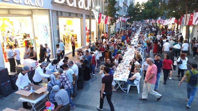 Karşıyaka Belediye Başkanı Dr. Cemil Tugay’ın ev sahipliğindeki organizasyon için Çarşı ve yan sokaklarında toplam 850 metrelik sofra kuruldu. Dualarla açılan iftarda, katılımcılara çorba, köfte, pilav, tatlı ve iftariyelikten oluşan menü ikram edildi. CHP İzmir Milletvekili Kani Beko’nun da katıldığı 6 bin kişilik iftarda; birlik, beraberlik ve hoşgörü mesajları verildi.