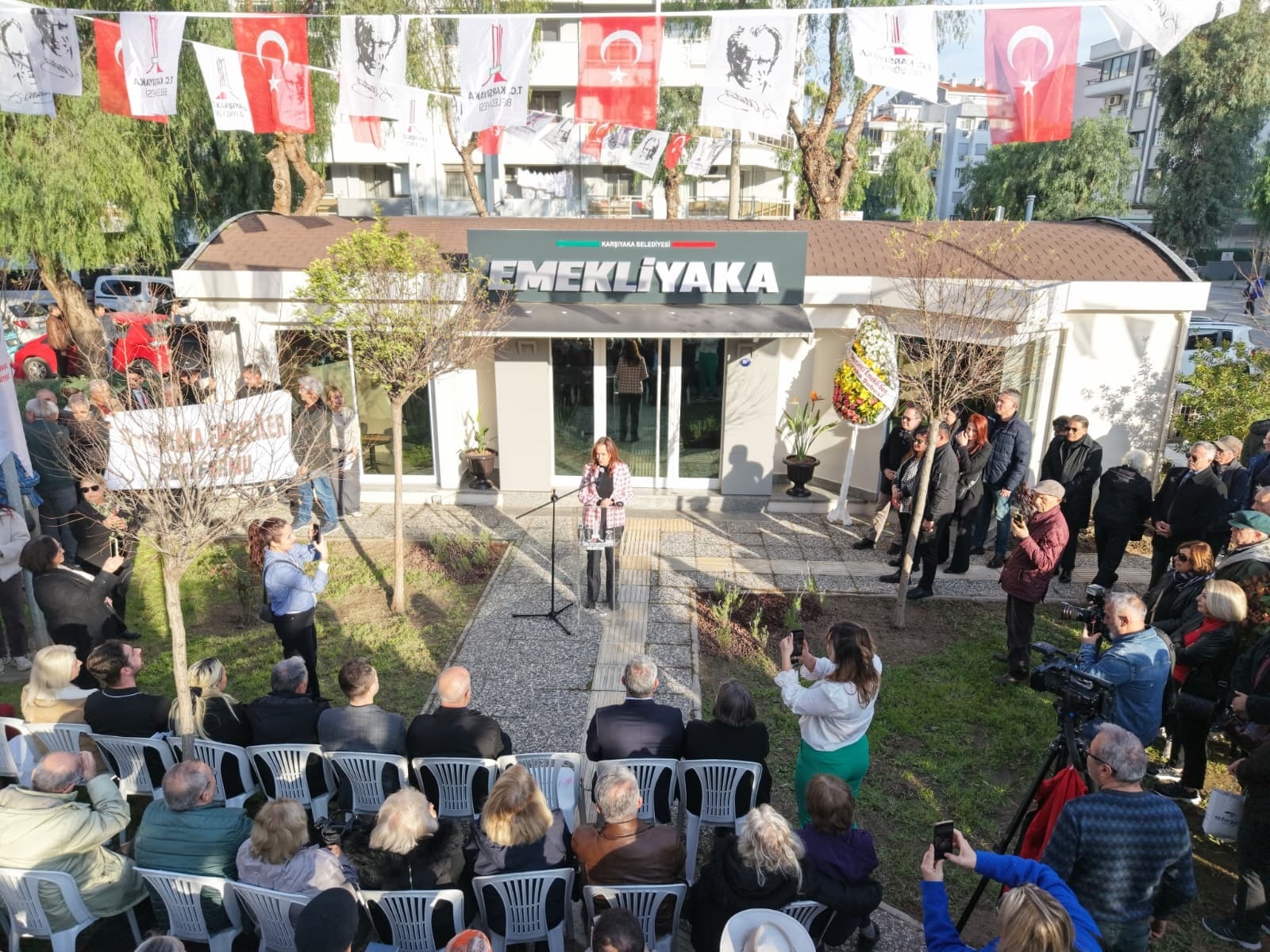 Karşıyaka Kent Konseyi Emekliler Çalışma Grubu ve Karşıyaka Emekliler Platformu adına konuşma yapan Göksan Ataman da “Emekli Yaka, Karşıyakamızın çınarlarına, alın teriyle bu kenti büyüten emeklilere karşı gerçek bir vefa, saygı ve dayanışmanın göstergesidir. Emeği geçen herkese teşekkür ederim” dedi.