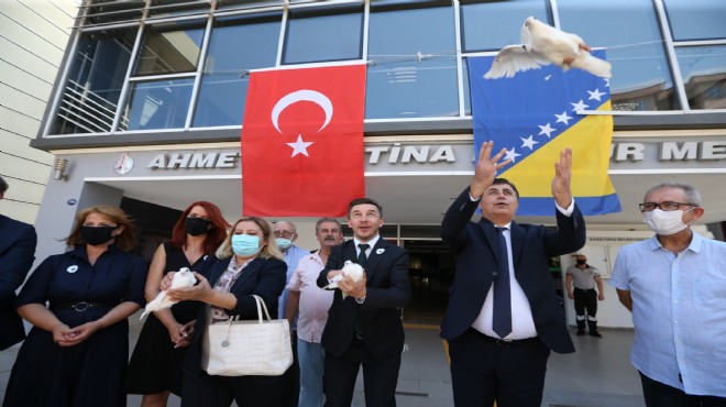 Srebrenitsa katliamının 26. yılı nedeniyle Karşıyaka Belediyesi Ahmet Piriştina Kültür Merkezi'nde anma etkinliği gerçekleştirildi. Tören, fotoğraf sanatçıları Aylin Telef ve Ayşegül Çetinkalp'in katliamla ilgili hazırladığı sunumun gösterimiyle başladı. Duygusal anlar yaşatan sunumun ardından sırasıyla Karşıyaka Belediyesi ve İzmir Büyükşehir Belediyesi Balkan Masası Sorumlusu Atilla Baysak, Bosna Hersek Göçmenleri Birliği Başkanı Hasan Sehovic, Karşıyaka Belediye Başkanı Dr. Cemil Tugay, Bosna Hersek Ankara Büyükelçisi Adis Alagic ve Dışişleri Bakanlığı İzmir Temsilcisi Büyükelçi Naciye Gökçen Kaya konuşma yaptı. Daha sonra katılımcılar kültür merkezi girişindeki sergi salonunda sanatçılar Aylin Telef ve Ayşegül Çetinkalp tarafından açılan "Ölüm Yolunda Barış İçin Yürüyenler" isimli fotoğraf sergisini gezdi. Sergi sonrası protokol tarafından gökyüzüne barışı simgeleyen beyaz güvercinler uçuruldu.