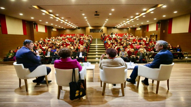 Karşıyaka Belediyesi’nin Kadına Yönelik Şiddete Karşı Uluslararası Mücadele Günü kapsamında düzenlediği 'Cumhuriyetimizin 100. Yılında Kadın' söyleşisi yoğun ilgiyle gerçekleştirildi. Şair yazar Haluk Işık’ın moderatörlüğünü üstlendiği, Karşıyaka Belediye Başkanı Dr. Cemil Tugay, Çağdaş Yaşamı Destekleme Derneği Genel Başkanı Prof. Dr. Ayşe Yüksel ve gazeteci yazar Işıl Özgentürk’ün konuşmacı olduğu söyleşi, CHP Karşıyaka İlçe Başkanı Levent Güçlü, ilçe yönetimi ve parti üyeleri, meclis üyeleri, muhtarlar, STK temsilcileri ve Karşıyakalıların katılımıyla yapıldı.