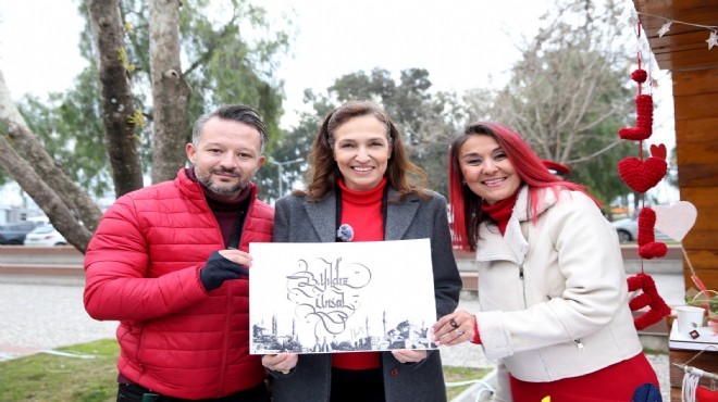 3 Şubat’ta açılan ve 16 Şubat’a kadar devam edecek olan Sevgililer Günü Pazarı’nda, el emeği ürünler, hediyelik eşyalar ve dekoratif süslemeler satışa sunuluyor. Ayrıca, pazar alanında bu yıl özel bir dekor da bulunuyor. Kırmızı ve yeşil renkte, birbirine bağlı iki kalpten oluşan ve Karşıyaka Belediyesi emekçileri tarafından hazırlanan özel tasarım, ziyaretçilerin romantik anlarına ev sahipliği yapıyor. Vatandaşlar satış alanından aldıkları küçük asma kilitleri bu dekora asarak anılarını ölümsüzleştirebiliyor.