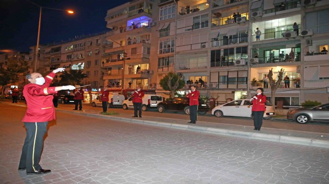 Bandonun sesini duyarak balkonlara çıkan Karşıyakalılar, marş ve şarkılara Türk bayrakları ve alkışlarla eşlik etti. Özellikle İzmir Marşı ve Karşıyakalı şarkısında coşku adeta tavan yaptı. Dün gece 24.00’da başlayan sokağa çıkma yasağı öncesi evlerinde olan Karşıyakalılara bir sürpriz yapmak istediklerini belirten Karşıyaka Belediye Başkanı Dr. Cemil Tugay, “Her zaman Karşıyakalıların yanındayız” diye konuştu.