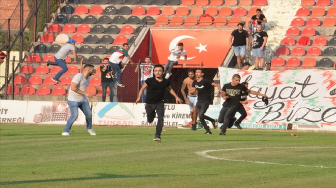 Saha içine taşınan kavgaya polis ekipleri müdahale etti. Kavga nedeniyle bir süre duran karşılaşmayı Turgutluspor 2-1 kazandı. (AA)