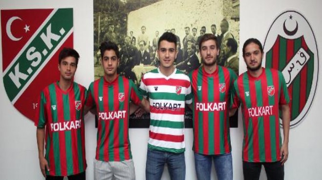 Kaf-Kaf, Çiğli Selçuk Yaşar Tesisleri'nde Bölgesel Gelişim U19 Ligi'nde final oynayan takımdan Caner Cengiz, Mert Yılmaz, Batuhan Kara, Hakan Denizci ve Berke Sarıgül'le 5'er yıllık sözleşme imzaladı. İmza törenine Başkan Vekili Gökhan Şensan, Futbol Altyapı Başkanı Tayfun Yungul, şube yöneticileri Hakan Çeliker, Ahmet Yimsek, Cenk Karslı ve Teknik Direktör Mesut Toros da katıldı. Geçen yıldan bu yana altyapı atılımı yapan Karşıyaka'da kaleci Berke sezon başında Eskişehirspor'dan, ön libero Caner ve forvet Hakan sezon başında Aydınspor 1923'ten transfer edildi.