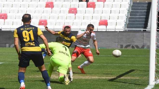 14’üncü dakikada Karşıyaka öne geçti. Ertuğrul’un ara pasıyla sağ çaprazdan ceza sahasına girip sıfıra inen Yılmaz’ın kale önüne çıkardığı topa Ali Say’a bomboş dokunmak kaldı: 1-0.