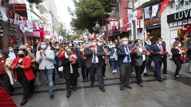 Ulu Önder Gazi Mustafa Kemal Atatürk’ün “En büyük eserim” dediği Cumhuriyet’in 97’nci kuruluş yıl dönümü, Karşıyaka’da coşku ve gururla kutlandı. Cumhuriyet Bayramı dolayısıyla dün Karşıyaka Kaymakamlığı bahçesindeki Atatürk Anıtı’na çelenk sunan Belediye Başkanı Dr. Cemil Tugay, bu sabah da CHP Karşıyaka İlçe Başkanlığı tarafından düzenlenen törene katıldı. Başkan Tugay, daha sonra CHP İlçe Başkanı M. Serdar Koç ve eşi Öznur Tugay ile birlikte Zübeyde Hanım Anıt Mezarı’nı ziyaret ederek karanfiller bıraktı, tarihi Latife Hanım Köşkü’nün bahçesindeki ‘Atatürk Fotoğrafları Sergisi’ni gezdi.