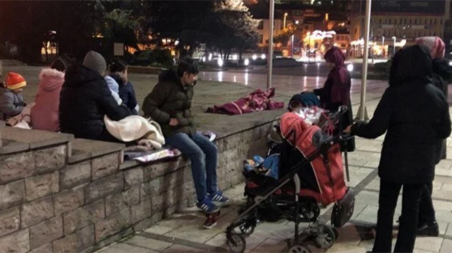 Depremin ardından ailesiyle birlikte sokakta kalan bir vatandaş, “Deprem oldu, çok korktuk. Biz de çocuklarla meydana geldik. Bu geceyi burada geçireceğiz” dedi. (AA, NTV))
