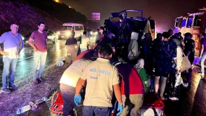 Muğla'dan Afyonkarahisar'a giden sürücüsü henüz öğrenilemeyen bir turizm firmasına ait otobüs, Pamukkale'nin Cankurtaran Mahallesi'nde yolcu minibüsü ve hafif ticari araca çarptı. Otobüs, çarpışmanın etkisiyle kontrolden çıkarak yan yattı.