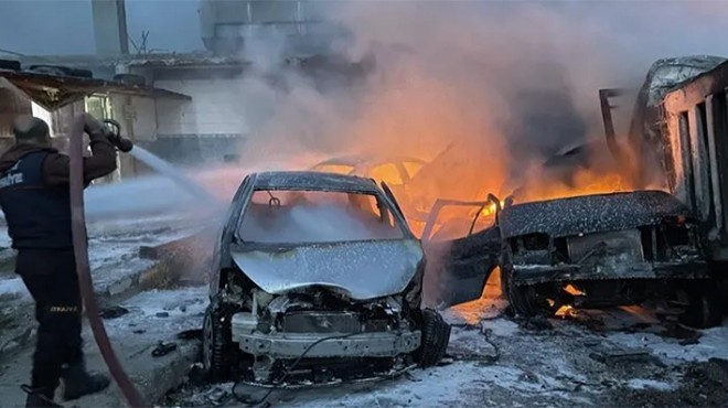 Kazanın ardından alev alan kamyon ve bir minibüsteki yangın, itfaiye ekiplerince söndürüldü.