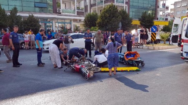 Kaza, bugün saat 12.00 sıralarında, Turgut Özal Bulvarı ile Faik Berber Sokak'ın birleştiği kavşakta meydana geldi. Ceyhun Nalbantoğlu (16) yönetimindeki 35 YNR 37 plakalı motosiklet, kavşakta Mustafa Görmüş (69) yönetimindeki 48 UF 957 plakalı otomobille çarpıştı. Çarpışmanın şiddetiyle yola savrulan kasksız motosiklet sürücüsü Nalbantoğlu ile otomobil sürücüsü Mustafa Görmüş yaralandı. Yaralılar, ambulanslarla Tire Devlet Hastanesi'ne kaldırılıp, tedaviye alındı. Yaralılardan Görmüş, ayakta tedavi edilirken, durumu ağır olan motosiklet sürücüsü Nalbantoğlu'nun vücudunun çeşitli yerledrinde kırıklar bulunduğu öğrenildi.