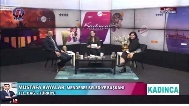 Menderes Belediye Başkanı Mustafa Kayalar, Avrupa’da yayın yapan bir televizyon kanalının canlı yayınına telefonla bağlanarak Ekim ayında Menderes Belediyesi ile Almanya’nın Troisdorf Belediyesi arasında Almanya’da imzalanan ve başta kültür olmak üzere birçok alanda iş birliklerini içeren kardeş şehir protokolüyle ilgili bilgi verdi.